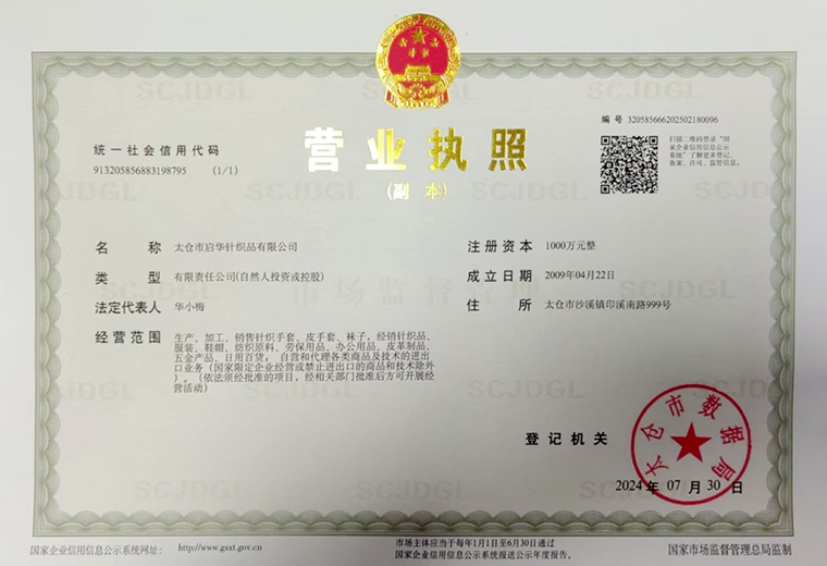 太倉(cāng)市啟華針織品有限公司成立于2008年,位于江蘇太倉(cāng),是一家專(zhuān)業(yè)生產(chǎn)銷(xiāo)售防護(hù)用品的實(shí)體型生產(chǎn)企業(yè)。