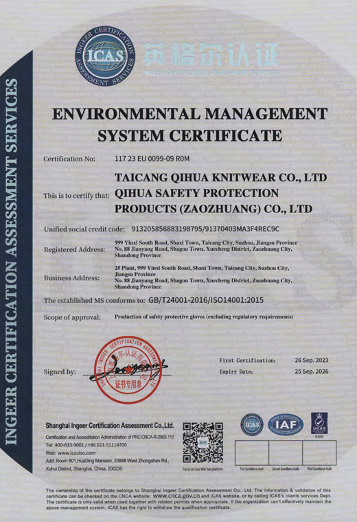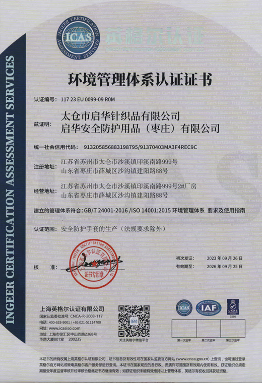 環(huán)境管理體系認(rèn)證證書(shū)-英文